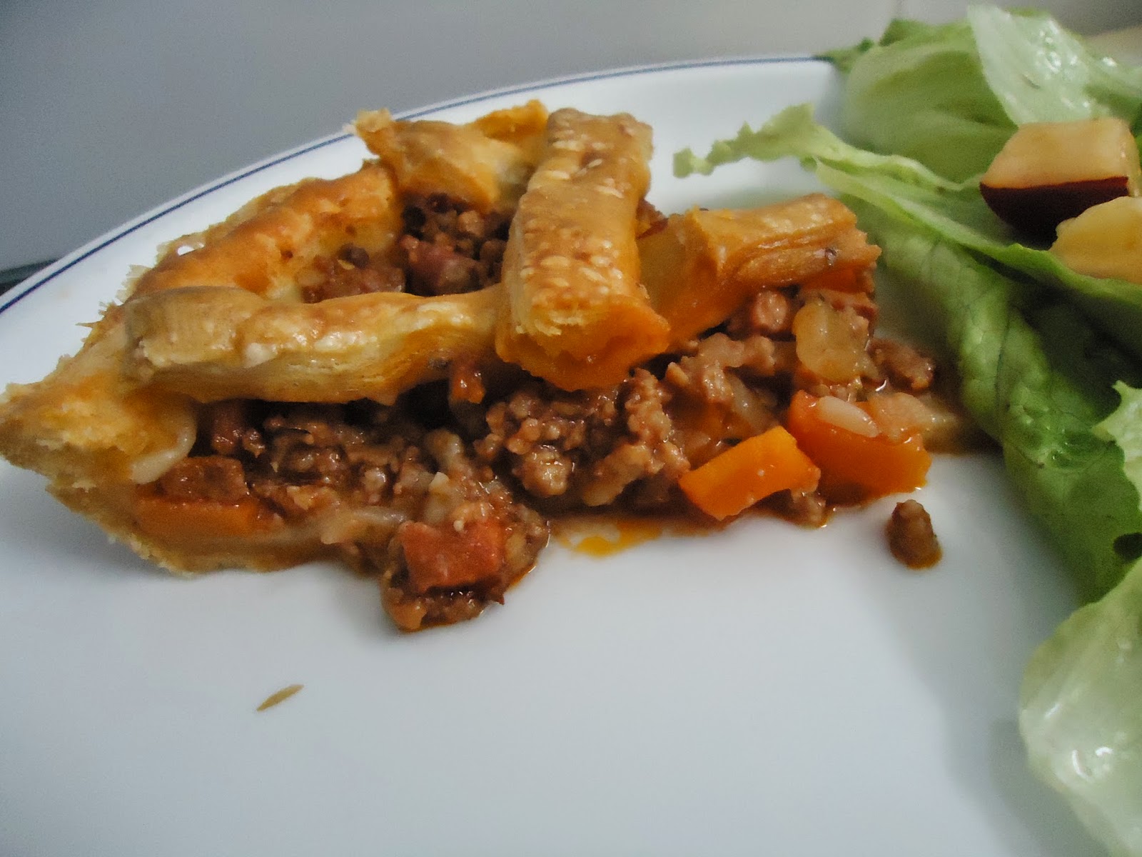 tinha feito bolonhesa mas sobrou esta carne e com ela fiz a tarte que ficou divinal adorei mesmo e aproveitamos a carne que não tínhamos comido sem desperdícios.