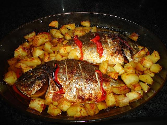 Dourada é um peixe que faço varias vezes cá em casa por ser um peixe que não tem muitas espinhas e por ser um peixe bastante suculento,não gostamos de peixe muito seco, acho que poucas pessoas gostam :) e elas estavam com um aspecto muito fresco na peixaria.