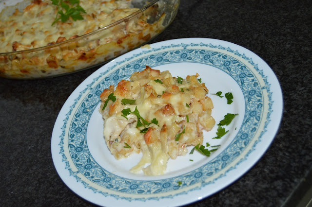 Esta receita é mais um aproveitamento de sobras de outras refeições que para além de económicas ficam uma verdadeira maravilha. Tinha-me sobrado uns pedaços de frango assado que tinha comprado e decidi fazer esta maravilha que é uma adaptação do famoso bacalhau com natas .