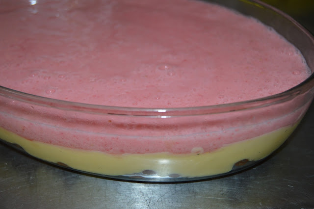 Antecipadamente preparar uma dose de gelatina de morango e deixar prender.eu faço de um dia para o outro.
