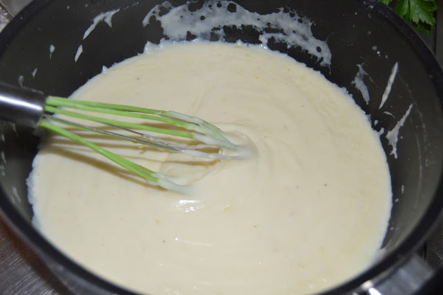 Vá mexendo, com a ajuda de uma vara de arames, até o molho engrossar  se achar muito grosso acrescentar mais um pouco de leite.