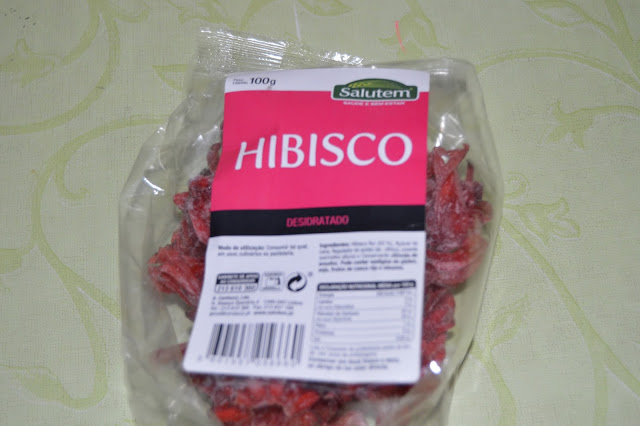 Num destes dias quando andava pelo super mercado as compras deparei-me com esta embalagem de hibisco que me chamou logo á atenção pela sua cor e assim que vi que podia ser consumido assim como estava ou em sobremesas decidi trazer para experimentar.
